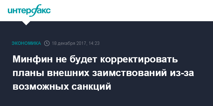 Минфин не будет корректировать планы внешних заимствований из-за возможных санкций