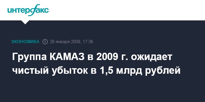 Казань. 26 января. INTERFAX.RU - Группа "КАМАЗ" в 2009 г. ожидает чистый убыток в размере 1,5 млрд рублей, сообщил в понедельник на заседании коллегии министерства экономики Татарстана директор департамента экономики "КАМАЗа" Олег Хомков.