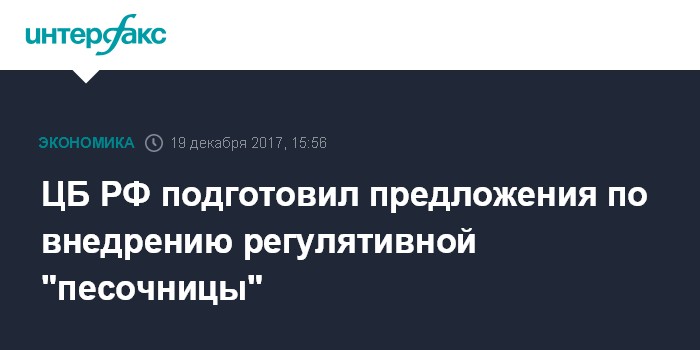 Москва. 19 декабря. INTERFAX.RU - Банк России подготовил проект доклада президенту РФ по созданию в России регулятивной "песочницы", сообщил "Интерфаксу" источник в финансово-экономическом блоке правительства.