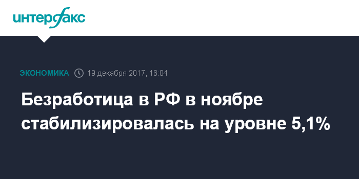 Безработица в РФ в ноябре стабилизировалась на уровне 5,1%