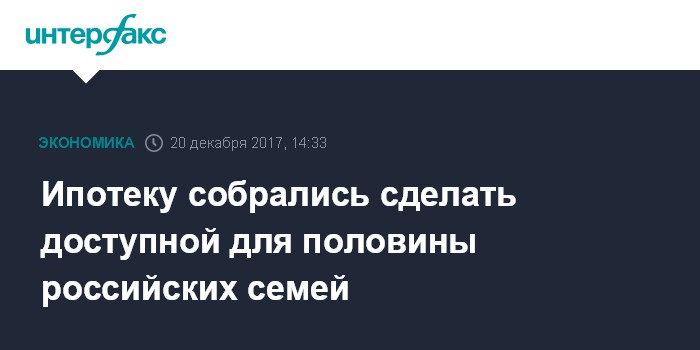 Москва. 20 декабря. INTERFAX.RU - Минстрой намерен обеспечить доступность ипотечного кредитования для половины российских семей, заявил в среду министр строительства и ЖКХ Михаил Мень на заседании совета при президенте РФ по стратегическому развитию и приоритетным проектам.