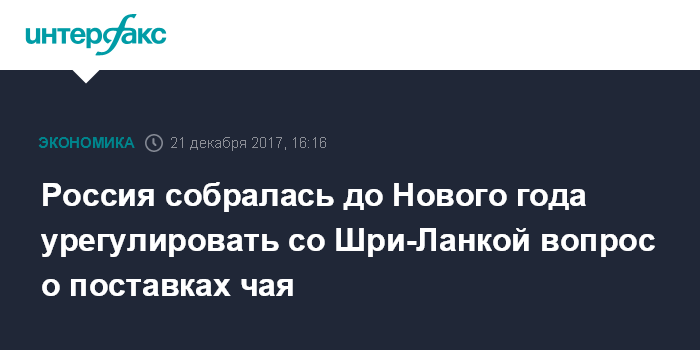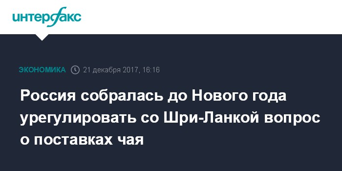 Москва. 21 декабря. INTERFAX.RU - Россельхознадзор планирует до Нового года урегулировать со Шри-Ланкой вопрос о поставках чая, сообщил "Интерфаксу" руководитель службы Сергей Данкверт.