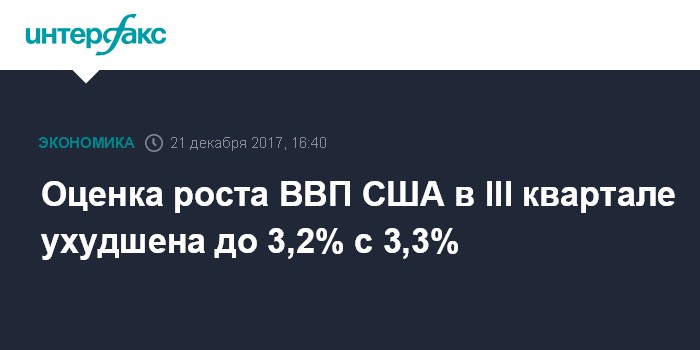 Оценка роста ВВП США в III квартале ухудшена до 3,2% с 3,3%