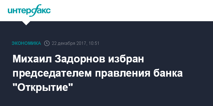 Михаил Задорнов избран председателем правления банка "Открытие"