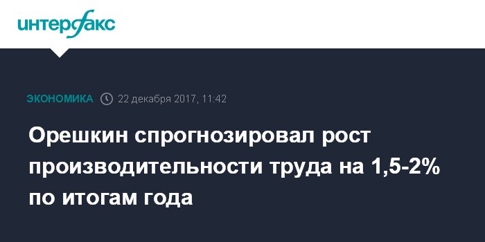 "Если говорить по экономике, здесь мы тоже возвращаемся на положительный тренд - на 2017 год мы ожидаем рост производительности труда в диапазоне от 1,5% до 2%", - заявил Орешкин.
