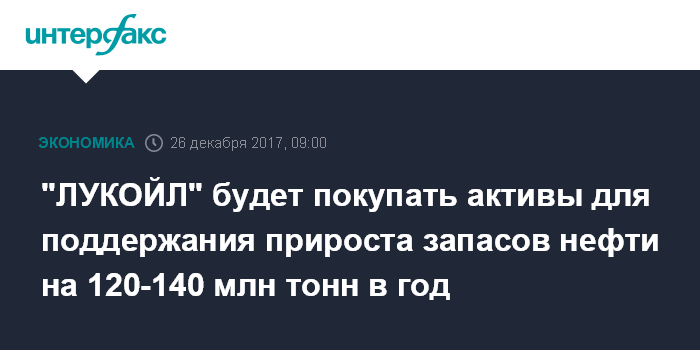 "ЛУКОЙЛ" будет покупать активы для поддержания прироста запасов нефти на 120-140 млн тонн в год