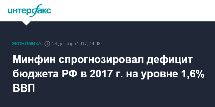 Минфин спрогнозировал дефицит бюджета РФ в 2017 г. на уровне 1,6% ВВП