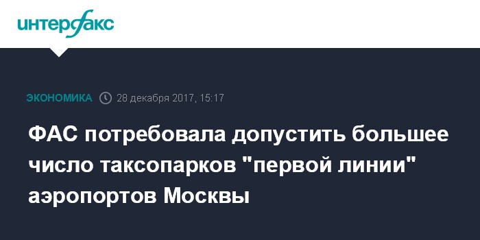 Москва. 28 декабря. INTERFAX.RU - Федеральная антимонопольная служба (ФАС) потребует расширить список таксопарков, допущенных к "первой линии" аэропортов Московского авиационного узла.