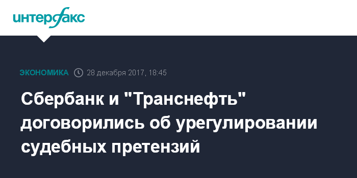 Сбербанк и "Транснефть" договорились об урегулировании судебных претензий