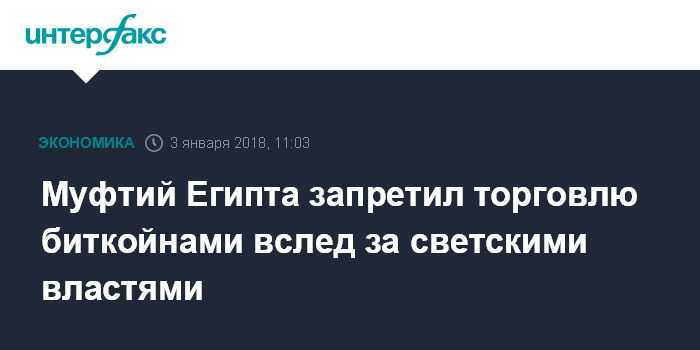 Как отметил главный муфтий Египта, риски в связи с использованием биткойна могут возникнуть, поскольку эта виртуальная валюта не находится под надзором ни одного централизованного органа. "Биткойны запрещены шариатом, поскольку они наносят ущерб отдельным лицам, группам лиц или учреждениям", - цитирует фетву крупнейшая египетская газета "Аль-Ахрам".
