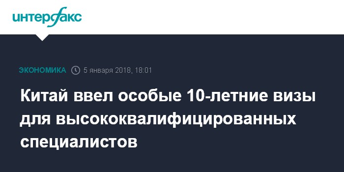 Москва. 5 января. INTERFAX.RU - Китайские власти начали выдавать специальные долгосрочные визы, сроком от 5 до 10 лет, для привлечения в страну предпринимателей и высококвалифицированных специалистов из-за рубежа, сообщают местные СМИ.