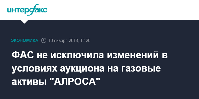 ФАС не исключила изменений в условиях аукциона на газовые активы "АЛРОСА"