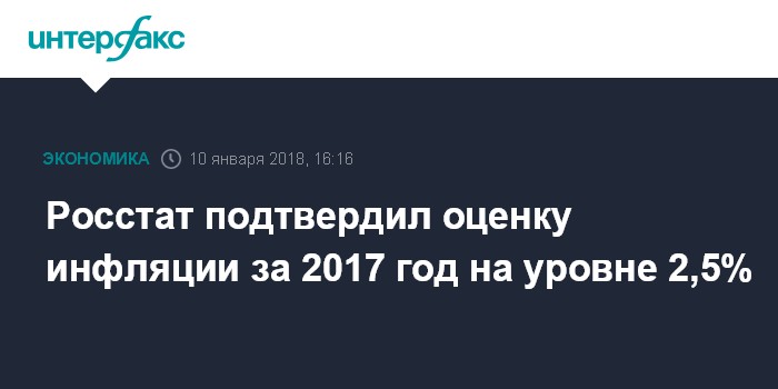 Росстат подтвердил оценку инфляции за 2017 год на уровне 2,5%