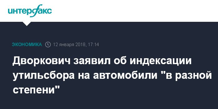 Москва. 12 января. INTERFAX.RU - Утилизационный сбор на автомобили будет индексирован "в разной степени" - от 0% до 15% и чуть выше в зависимости от ряда факторов, заявил вице-премьер РФ Аркадий Дворкович журналистам в Ижевске в пятницу.