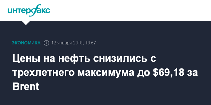 Цены на нефть снизились с трехлетнего максимума до $69,18 за Brent
