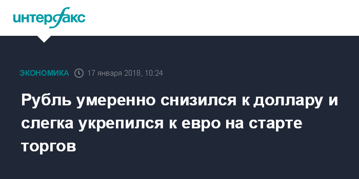 Рубль умеренно снизился к доллару и слегка укрепился к евро на старте торгов