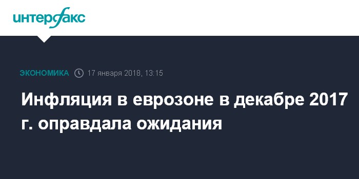 Инфляция в еврозоне в декабре 2017 г. оправдала ожидания