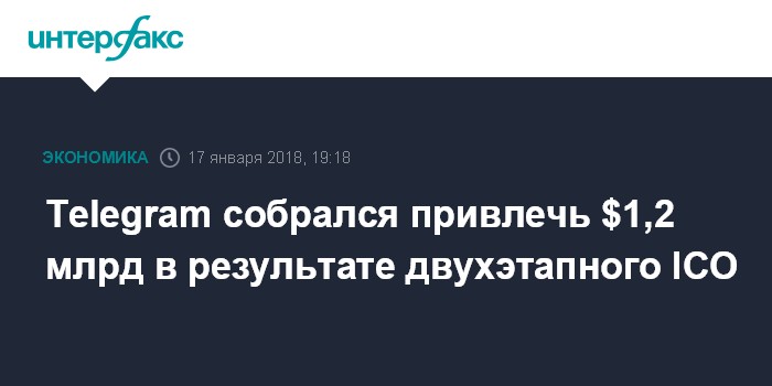 Москва. 17 января. INTERFAX.RU - Мессенджер Telegram планирует привлечь $600 млн в рамках закрытого размещения токенов для использования в своем блокчейне Telegram Open Network до конца февраля 2018 года, сообщает агентство Bloomberg со ссылкой на инвестиционное предложение компании.
