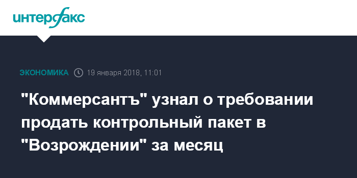 "Коммерсантъ" узнал о требовании продать контрольный пакет в "Возрождении" за месяц