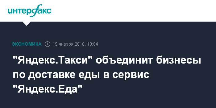 "Яндекс.Такси" объединит бизнесы по доставке еды в сервис "Яндекс.Еда"
