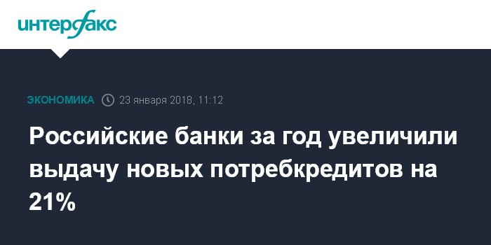 Российские банки за год увеличили выдачу новых потребкредитов на 21%