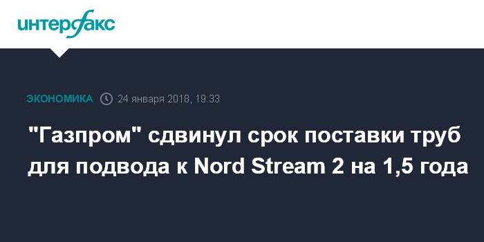 "Газпром" сдвинул срок поставки труб для подвода к Nord Stream 2 на 1,5 года