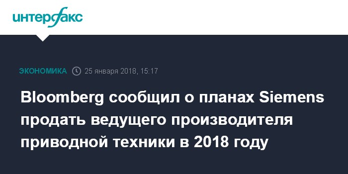 Bloomberg сообщил о планах Siemens продать ведущего производителя приводной техники в 2018 году
