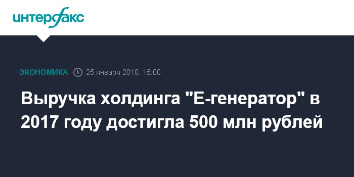 Выручка холдинга "Е-генератор" в 2017 году достигла 500 млн рублей
