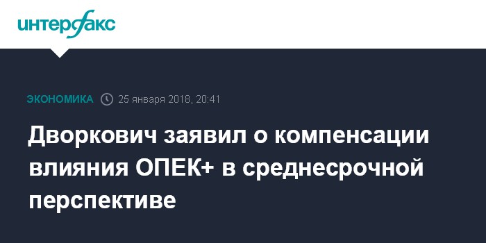 Москва. 25 января. INTERFAX.RU - Сделка ОПЕК+ замедлила экономический рост в России, но в среднесрочной перспективе это снижение будет компенсировано, заявил вице-премьер РФ Аркадий Дворкович на брифинге в рамках экономического форума в Давосе.