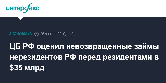 ЦБ РФ оценил невозвращенные займы нерезидентов РФ перед резидентами в $35 млрд