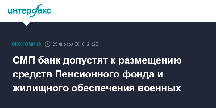 СМП банк допустят к размещению средств Пенсионного фонда и жилищного обеспечения военных