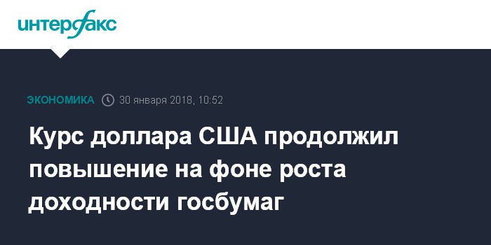 Москва. 30 января. INTERFAX.RU - Курс американского доллара продолжает расти относительно основных мировых валют на фоне повышения доходности гособлигаций США.