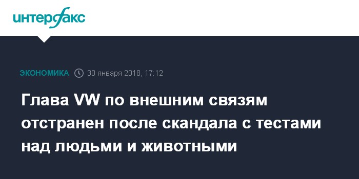 Глава VW по внешним связям отстранен после скандала с тестами над людьми и животными