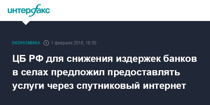 ЦБ РФ для снижения издержек банков в селах предложил предоставлять услуги через спутниковый интернет