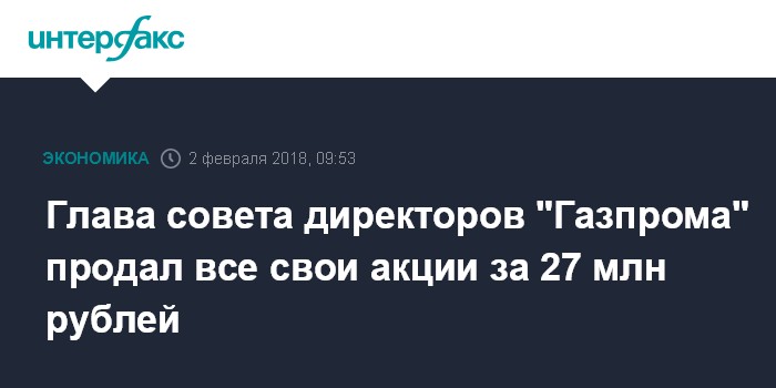 Глава совета директоров "Газпрома" продал все свои акции за 27 млн рублей