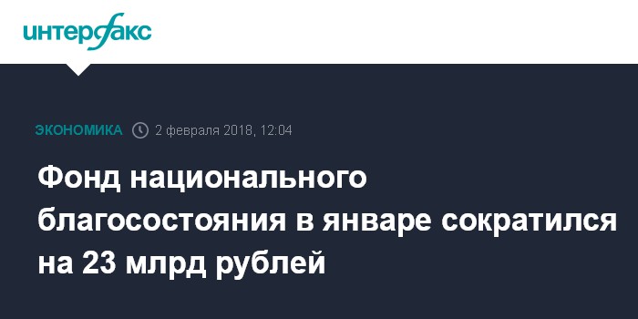 Фонд национального благосостояния в январе сократился на 23 млрд рублей