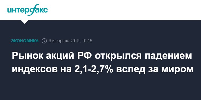 Рынок акций РФ открылся падением индексов на 2,1-2,7% вслед за миром