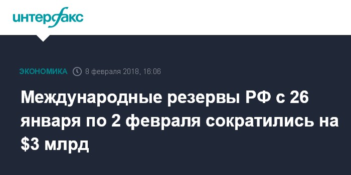 Международные резервы РФ с 26 января по 2 февраля сократились на $3 млрд