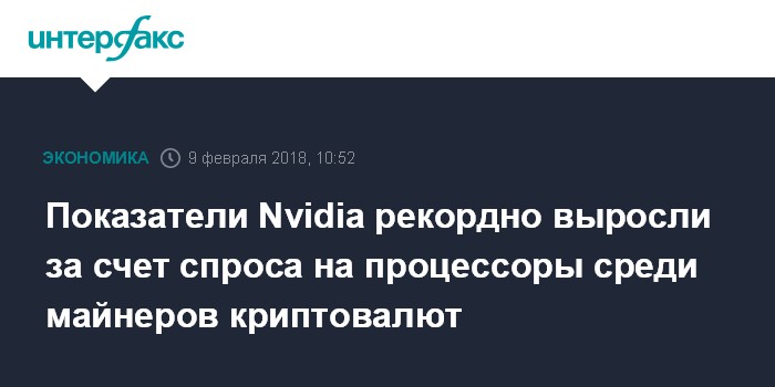 Показатели Nvidia рекордно выросли за счет спроса на процессоры среди майнеров криптовалют