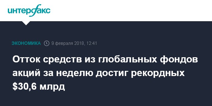 Москва. 9 февраля. INTERFAX.RU - Инвесторы вывели рекордные $30,6 млрд из глобальных фондов акций за неделю с 1 по 7 февраля, свидетельствуют данные EPFR Global.