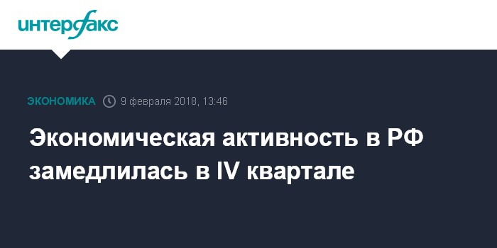 Москва. 9 февраля. INTERFAX.RU - Экономическая активность в РФ в IV квартале 2017 года замедлилась, говорится в сообщении ЦБ по итогам заседания, на котором Банк России снизил ключевую ставку на 25 базисных пунктов, до 7,5%.