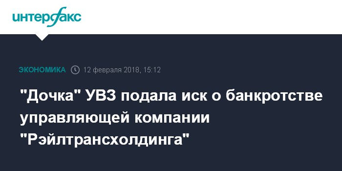 "Дочка" УВЗ подала иск о банкротстве управляющей компании "Рэйлтрансхолдинга"