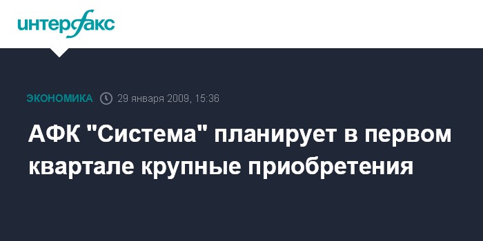Давос. 29 января. INTERFAX.RU - АФК "Система" планирует в первом квартале совершить крупные приобретения на "миллиарды долларов".