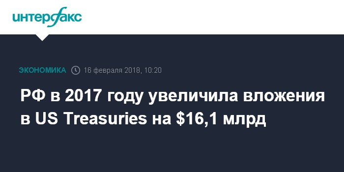 РФ в 2017 году увеличила вложения в US Treasuries на $16,1 млрд