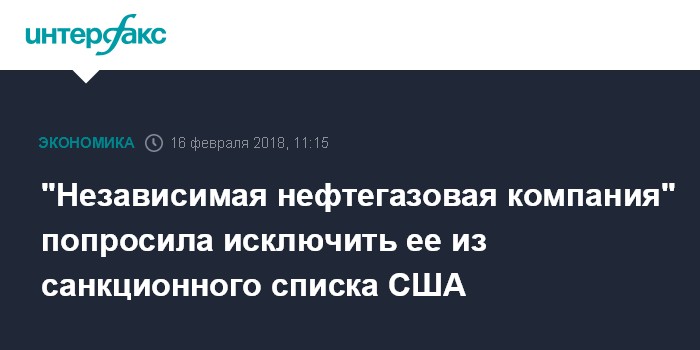 "Независимая нефтегазовая компания" попросила исключить ее из санкционного списка США