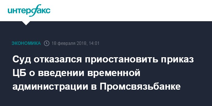 Суд отказался приостановить приказ ЦБ о введении временной администрации в Промсвязьбанке