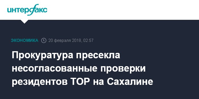Прокуратура пресекла несогласованные проверки резидентов ТОР на Сахалине