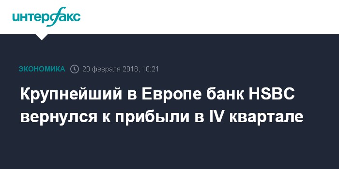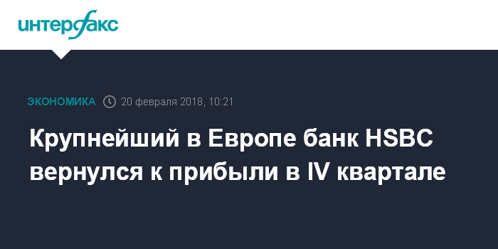 Москва. 20 февраля. INTERFAX.RU - Британский банк HSBC Holdings Plc, крупнейший в Европе, вернулся на прибыльный уровень в четвертом квартале, однако прибыль за 2017 год в целом не оправдала ожиданий рынка.