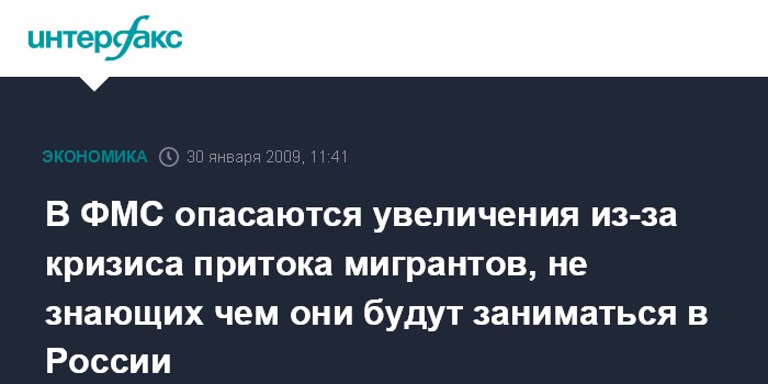 Москва. 30 января. INTERFAX.RU - Отток мигрантов из государств бывшего СССР в Россию при усилении мирового финансового кризиса может сделать трудовую миграцию источником напряженности, считают в руководстве Федеральной миграционной службы (ФМС).