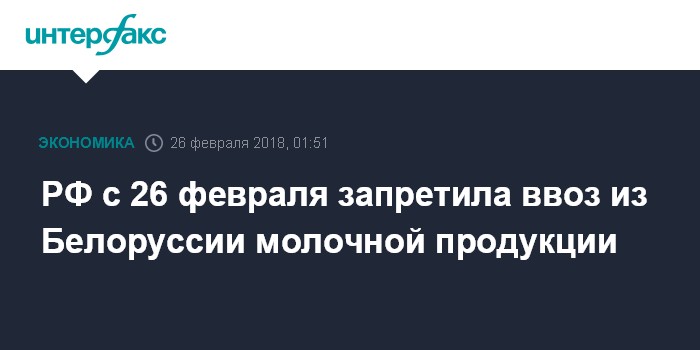 РФ с 26 февраля запретила ввоз из Белоруссии молочной продукции